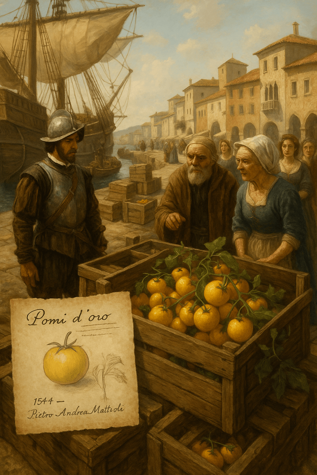 Prvi pisani trag o paradajzu u Evropi datira iz 1544. godine kada ga italijanski botanicar PIETRO ANDREA MATTIOLI opisuje i naziva "pomi d'oro" - "zlatne jabuke" sto ukazuje da je prvobitna boja paradajza bila zuta.Dve sorte paradajza koje su donete iz Amerike imale su manje zute plodove.Kasnije se uzgojem i selekcijom razvio crveni paradajz.